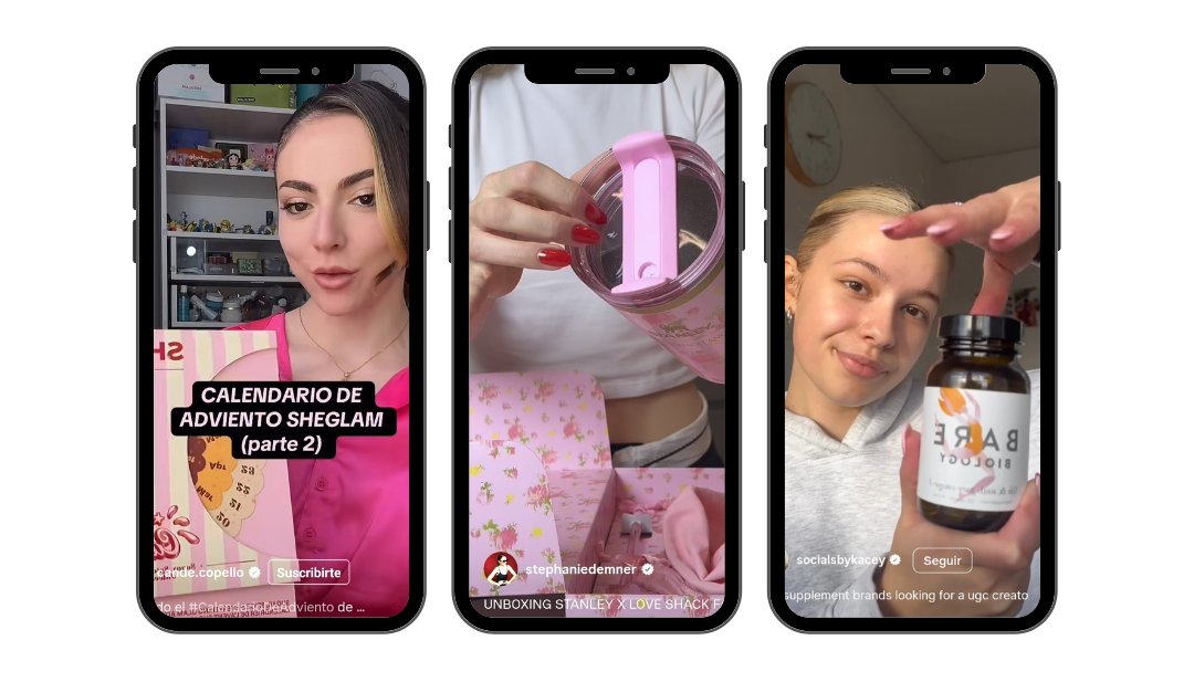 Este tipo de contenido suele incluirse por ejemplo en videos de rutina (mis mañanas usando X), fotos y reels, POVs, videos de tipo “lo que llevo en mi bolso” o fotos de usuarios reales en situaciones cotidianas 📸